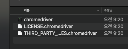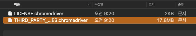 chromedriver ํ์ผ์ ํ์ผ๋ช ์ -> THIRD_PARTY_NOTICES.chromedriver ๋ณ๊ฒฝํ์๋ค.